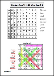 Mots mêlés : Les nombres de 10 à 20 (Numbers from 10 to 20)